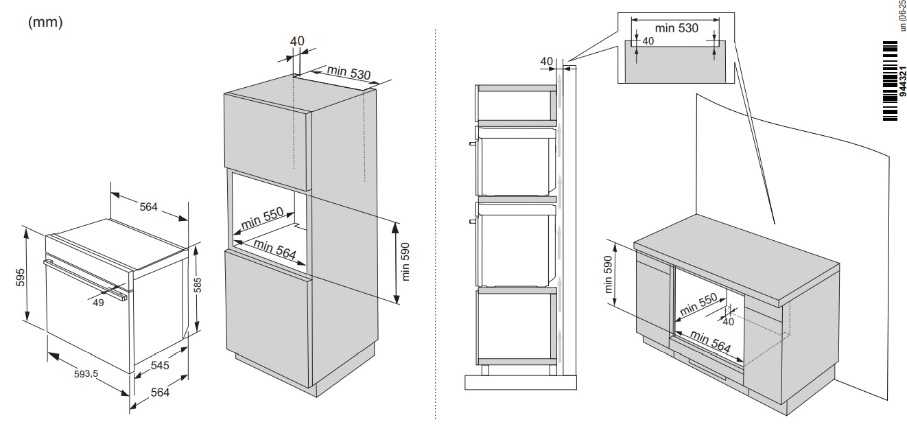 - Размер ниши для встраивания мм.: 590/560/550