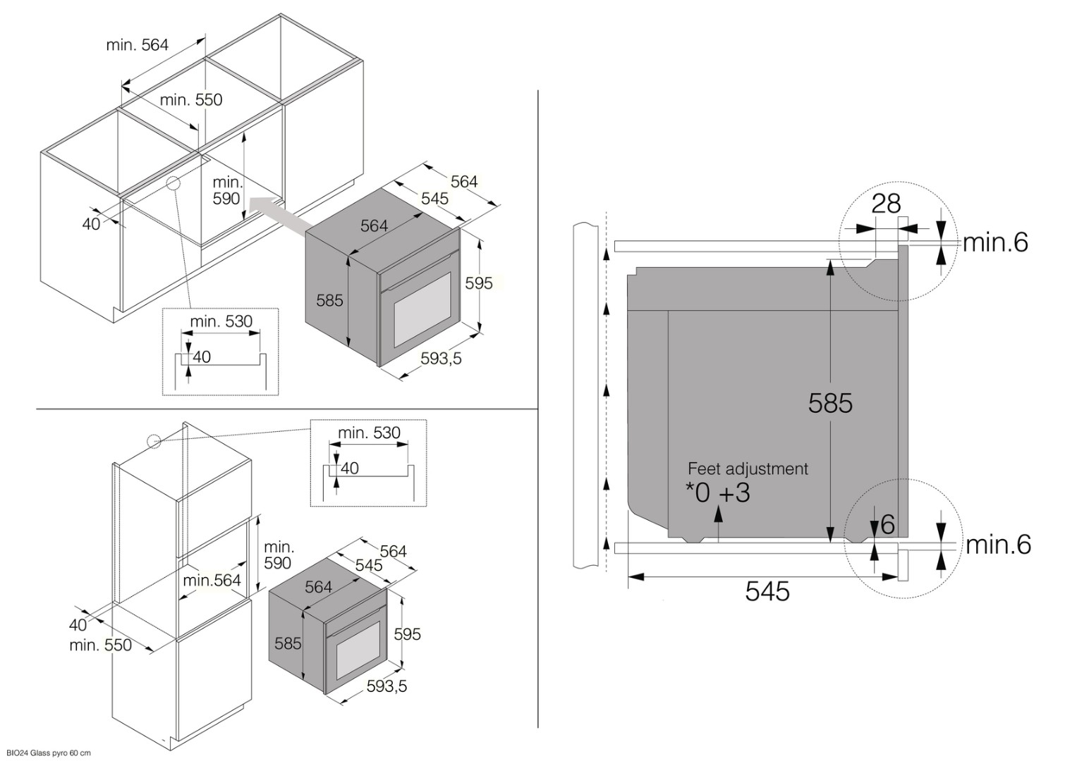 - Размер ниши для встраивания мм.: 590/560/550